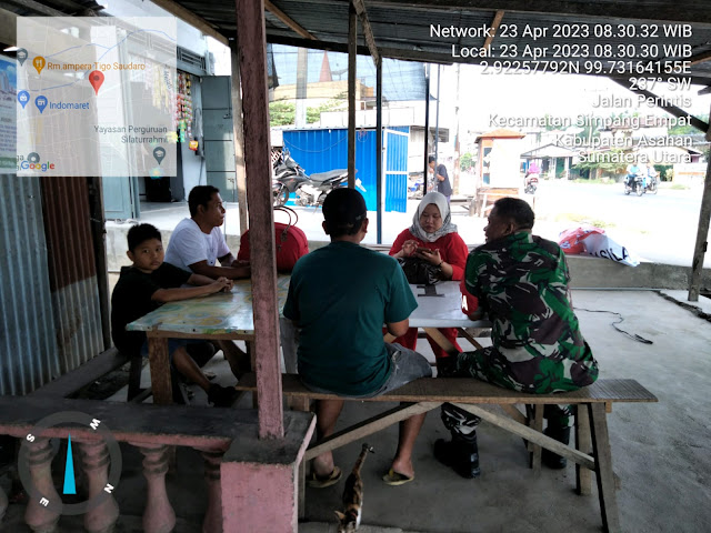 Asahan | Masih dalam suasana Hari Raya Idul Fitri 1444 H/2023 M, dalam rangka untuk menjalin silaturahmi bersama dengan warga binaan, dalam kesempatan ini seperti yang dilakukan oleh Personel Bintara Pembina Desa (Babinsa) Koramil 11/Simpang Empat jajaran Kodim 0208/Asahan Serma P Sitorus turun kewilayah binaan untuk melaksanakan kegiatan Komunikasi Sosial (Komsos) bersama dengan warga masyarakat binaan bersama dengan Bapak Yusron dalam rangka guna menjalin hubungan Silaturahmi antara Babinsa bersama warga masyarakat wilayah binaan serta membicarakan tentang Keamanan dan ketertiban dalam menyambut Hari Raya Idul Fitri, Bersama dengan Ibu Rani dan Bapak Esron, kegiatan tersebut yang dilaksanakan bertempat di Dusun IV Desa Teluk Dalam Kecamatan Simpang Empat Kabupaten Asahan, Minggu (23/04/2023).