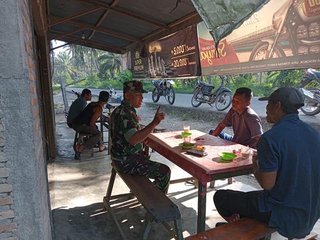 Asahan | Kegiatan Komsos ini bertujuan untuk menjalin silaturrahmi dan mempererat hubungan kekeluargaan dengan masyarakat khususnya tokoh agama diwilayah desa binaan, dalam kesempatan ini seperti yang dilakukan oleh Personel Bintara Pembina Desa (Babinsa) Koramil 10/Sei Kepayang jajaran Kodim 0208/Asahan Serka JH Lubis turun kewilayah binaan untuk melaksanakan kegiatan Komunikasi Sosial (Kosmso) warga bersama dengan warga binaan, disini Babinsa menghimbau masyarakat agar perbanyak berbuat kebaikan dan kebajikan dan sela sela perbincangan kami tak henti hentinya saya pun selalu mengingatkan waspadai dan selalu perhatikan anak remaja kita khususnya yang laki laki agar selalu kita monitor agar jangan sampai terlibat masalah tawuran, Warga Desa binaan pun dengan himbauan dan arahan yang saya berikan merasa senang karena merasa ada yang saling mengingatkan, bersama dengan Bapak Muksin, Bapak Sahren Marpaung, Bapak Zalminto dan Bapak Diki, kegiatan tersebut yang dilaksanakan bertempat di warung Bapak Damri Desa Sei Kepayang Kanan Kecamatan Sei Kepayang Kabupaten Asahan, Selasa (22/08/2023).